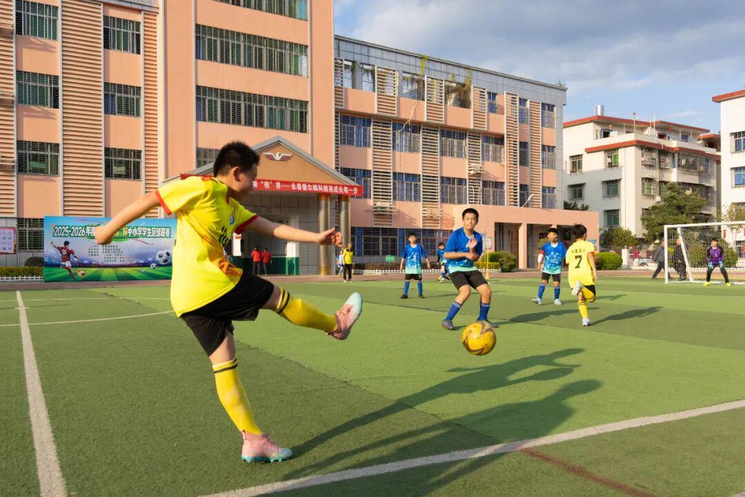 2月3日下午,历经3天激烈角逐,2025-2026 年度“永春爱尔”杯小学生足球联赛在五里街中心小学圆满落幕。永春县教育局副局长苏昌艺、永春县足球协会会长赵文彪、永春爱尔眼科医院 CEO 肖碧雄等出席闭幕式,全体裁判员、教练员和运动员参加闭幕式。